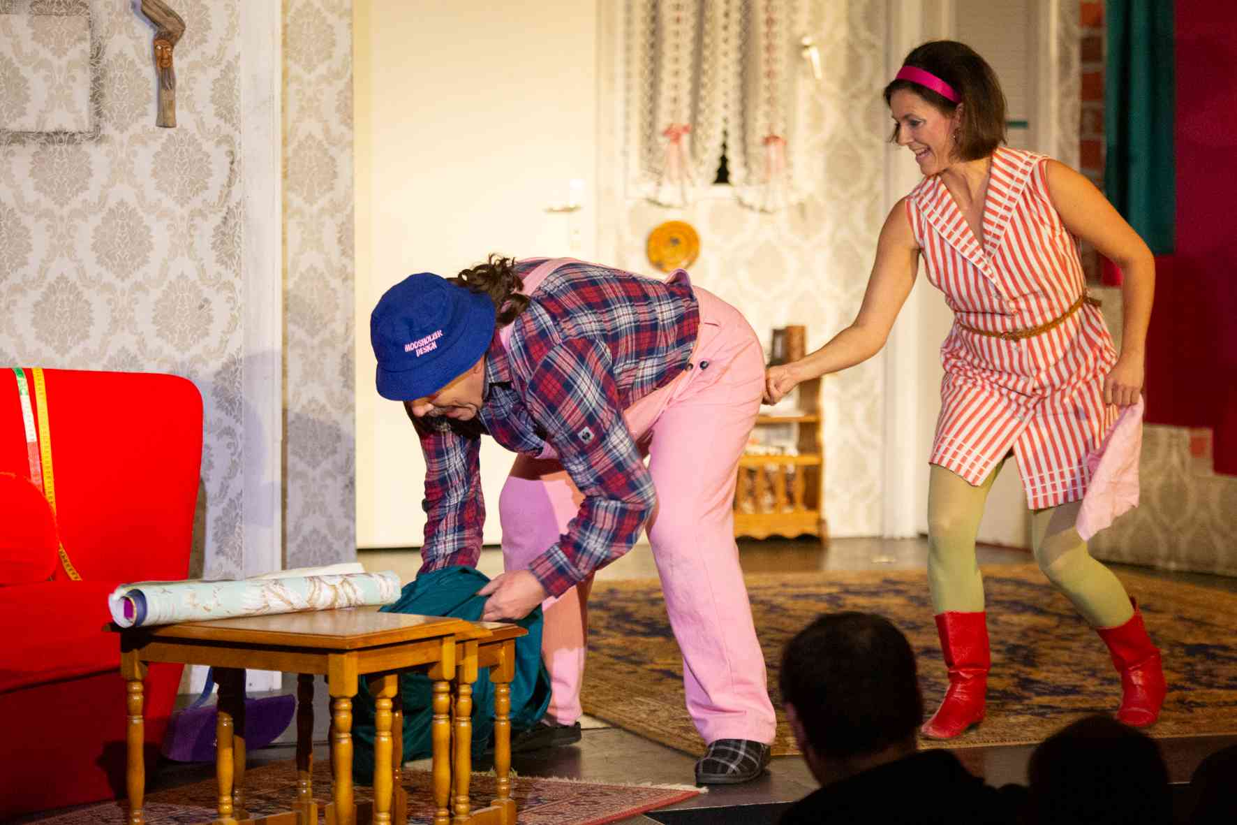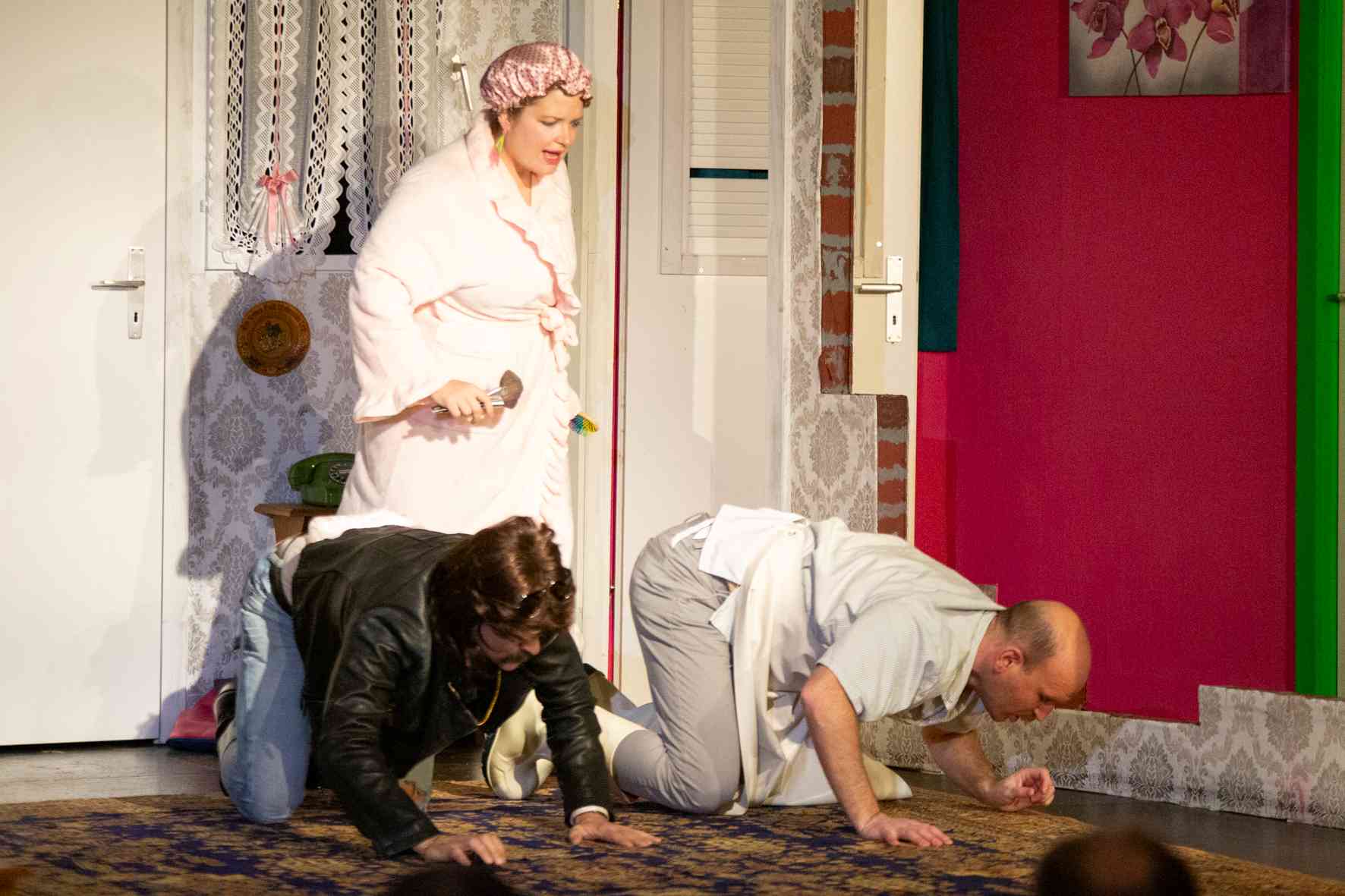 Aber dann schlagen mitten in Bayern die Gesetze der englischen Boulevard-Komödie unerbittlich zu: Verwechslungen, Missverständnisse, anzügliche Anspielungen, vermisste Unterwäsche und ein erfundener Hund sind ein paar der Zutaten für eine Farce, die gnadenlos immer weiter ins totale Chaos eskaliert.